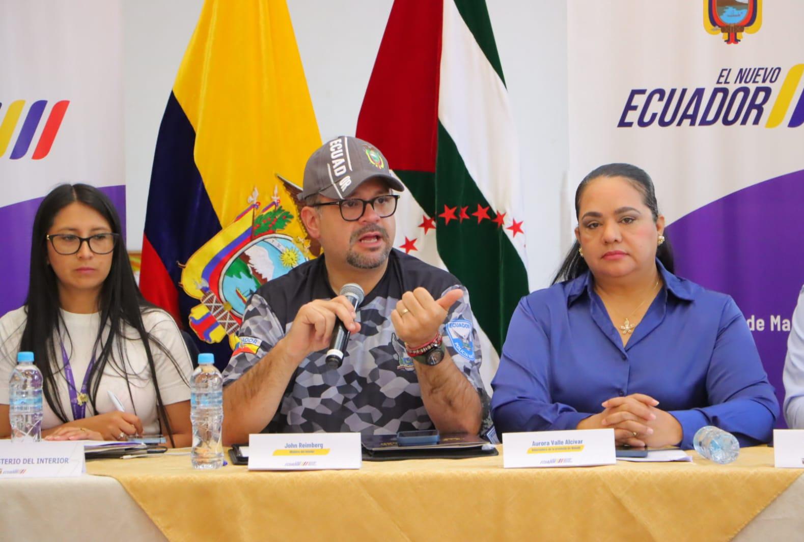 Ministro del Interior, John Reimberg, junto a la gobernadora Aurora Valle lidera el Consejo de Seguridad Provincial de Manabí